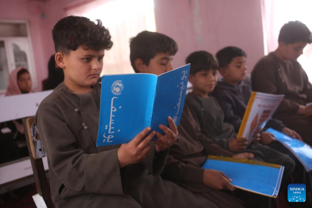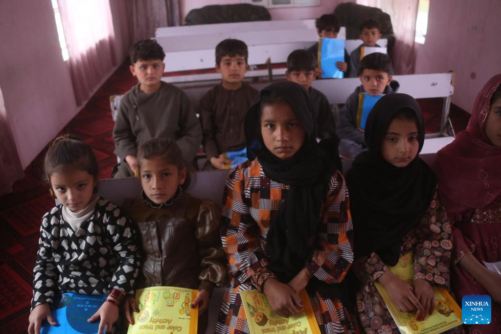 Afghan children attend a class at an educational center in Kabul, Afghanistan, March 26, 2026. (Photo by Saifurahman Safi/Xinhua)