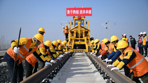 Track-laying operation of Xiong'an-Xinzhou high-speed railway kicks off
