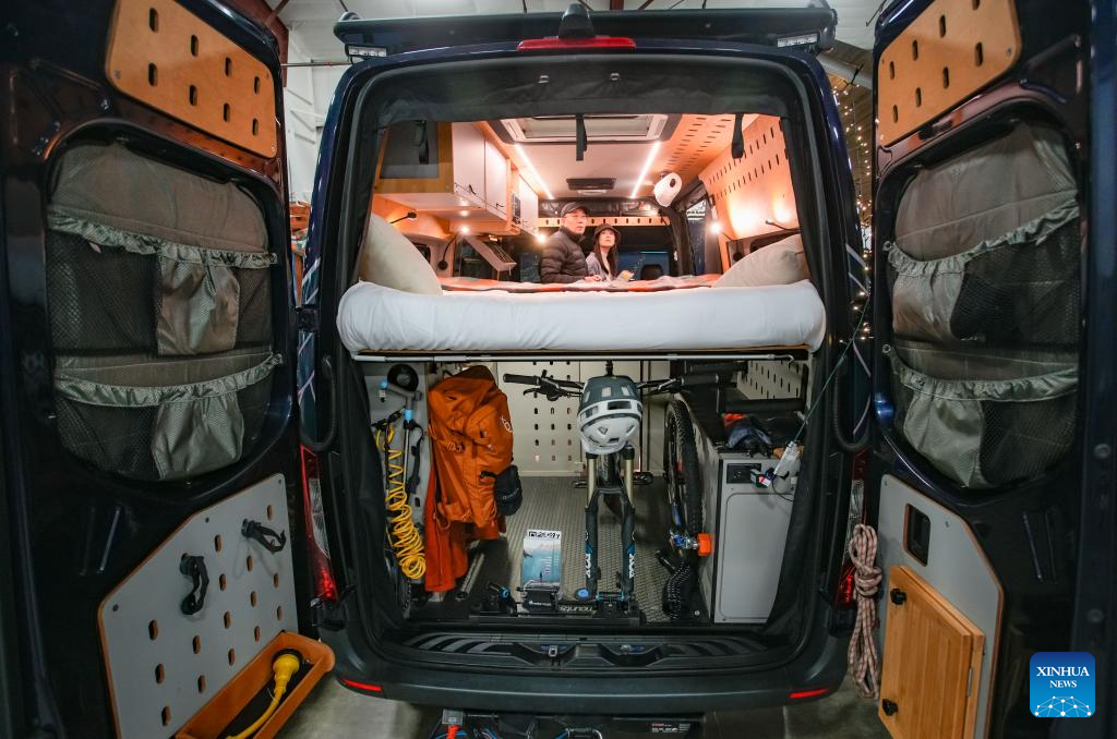 Visitors view the interior of a recreational vehicle (RV) at the 2026 Earlybird RV Show & Sale in Abbotsford, British Columbia, Canada, on Feb. 19, 2026. The four-day event kicked off here on Thursday. (Photo by Liang Sen/Xinhua)