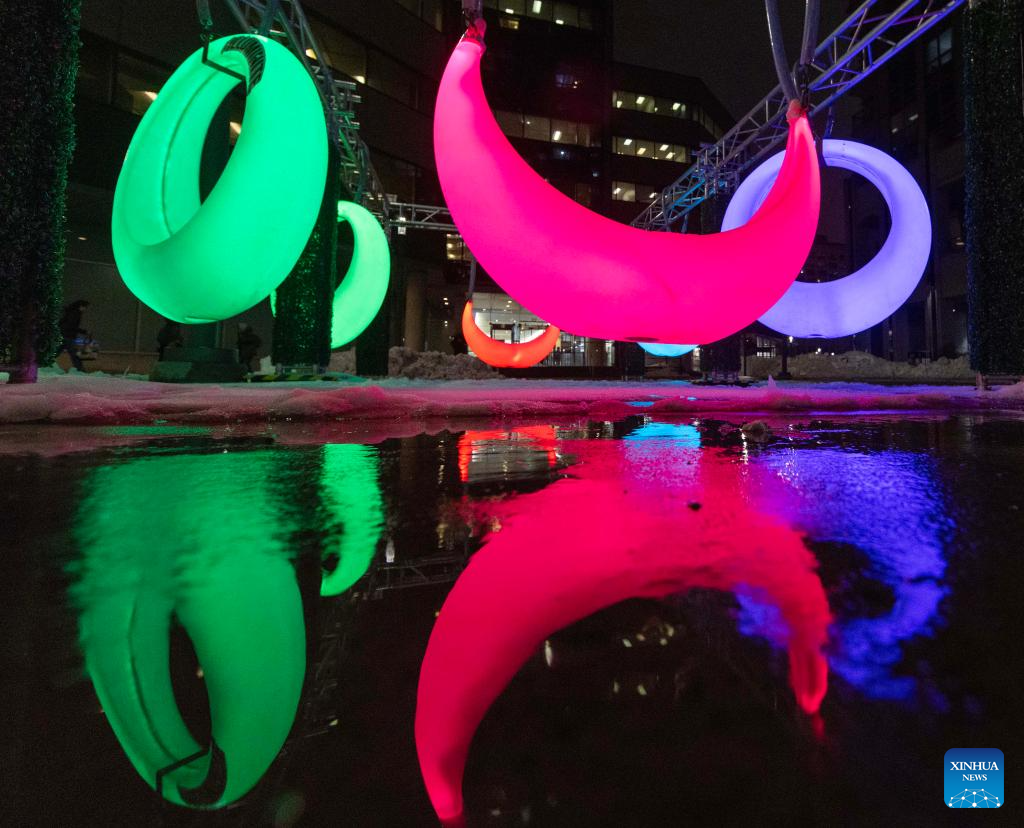 Light installations are on display at the Illuminite 2026 event in Toronto, Canada, Feb. 19, 2026. This event is held here from Feb. 13 to March 8. (Photo by Zou Zheng/Xinhua)