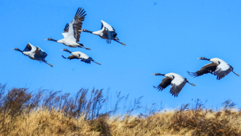 Black-necked cranes seen at Caohai National Nature Reserve in China's Guizhou