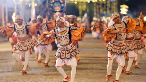 Dancers perform traditional dances during annual Navam Maha Perahera parade in Colombo