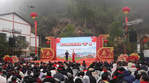 Villagers enjoy Spring Festival gala in Shenshan Village, China's Jiangxi