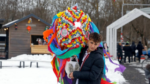 Masked people take part in "Cuckoo's Day" festival in Branesti, Romania