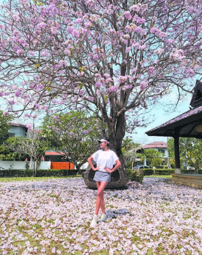 瞿颖“翻红”后,在微博上发帖写道:“今年的风铃花树又开满枝头了……它不为别的,只为自己原本的样子。”图片来自瞿颖微博。