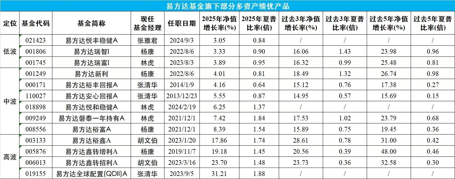 如今,易方达多资产投资管理规模已突破万亿元,其中公募管理规模超1600亿元(截至2025年三季度末数据),行业领先。