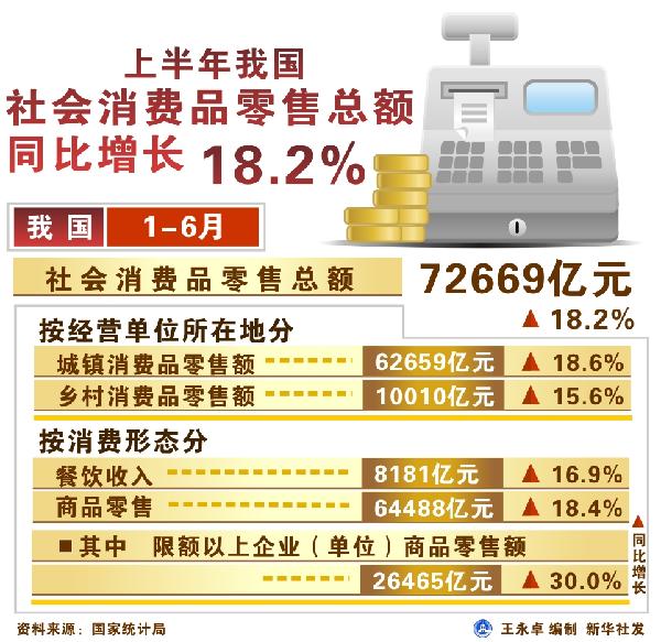 圖表:上半年我國社會消費(fèi)品零售總額增長18.2%