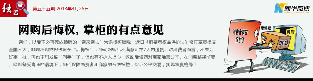 【規(guī)定有待細(xì)化】 如何端平行政手段調(diào)控的一碗水,看的就是在執(zhí)行與監(jiān)管中的功夫。將“后悔權(quán)”引入消法,應(yīng)配套出臺相關(guān)實(shí)施細(xì)則。對退貨時郵寄費(fèi)、送貨費(fèi)等標(biāo)準(zhǔn)加以限定,充分體現(xiàn)消費(fèi)者和經(jīng)營者平等的原則,使其更具操作性。