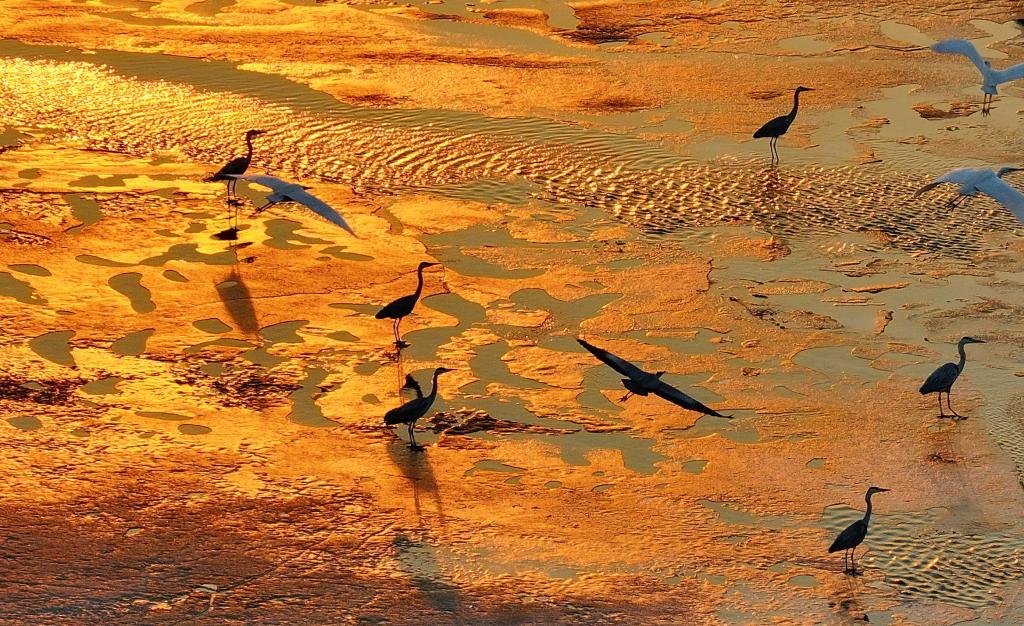 冰雪漸融春意動 候鳥歸飛入畫屏