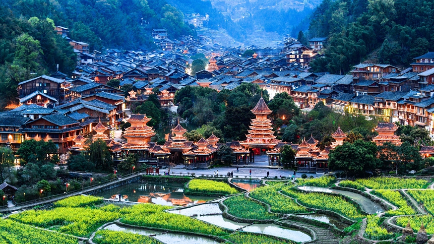 9月9日,山东省临沂市平邑县保太镇农民晾晒收获的玉米(无人机照片)。