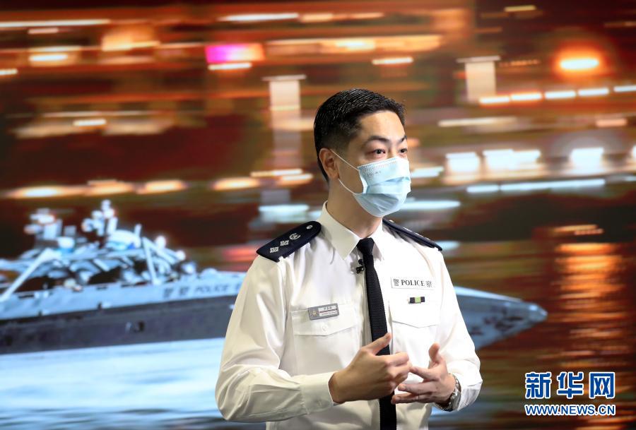 香港警務(wù)處公共關(guān)系科總督察翁海城接受采訪(2月9日攝)。新華社記者 李鋼 攝