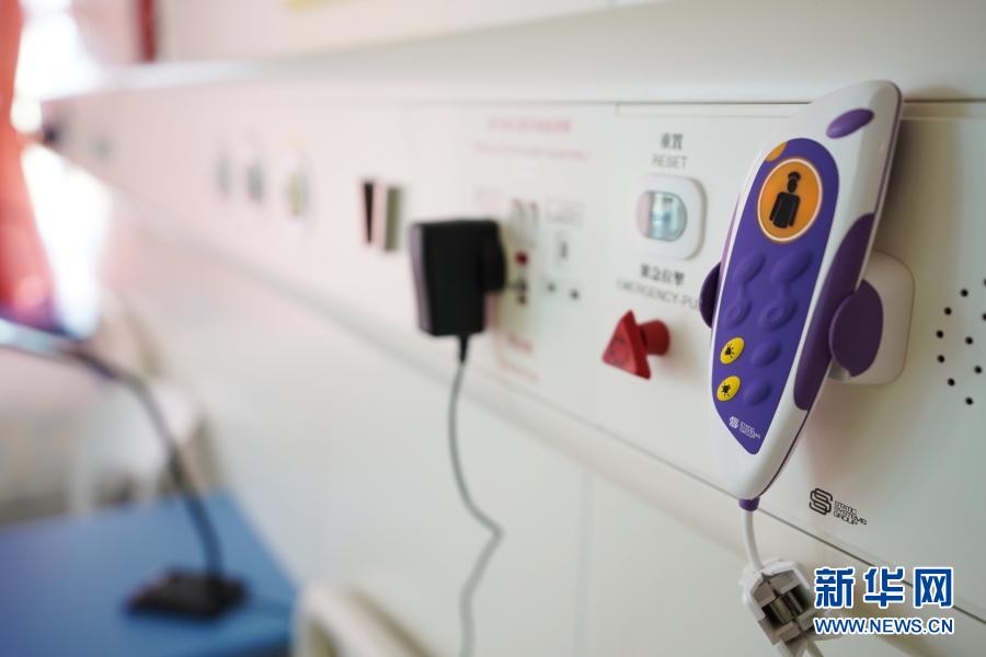 安心、溫馨,這是記者對病房的第一印象。一間病房設(shè)置6張床位和一個衛(wèi)生間,病床分兩排,每張床配有一把椅子、一個床頭柜和一張床上桌,床上鋪蓋一套淺色碎花寢具,床頭背靠的墻面上配備各類醫(yī)用檢測儀器,病房內(nèi)還有智能生態(tài)儀器,方便醫(yī)護人員測試病患情況。