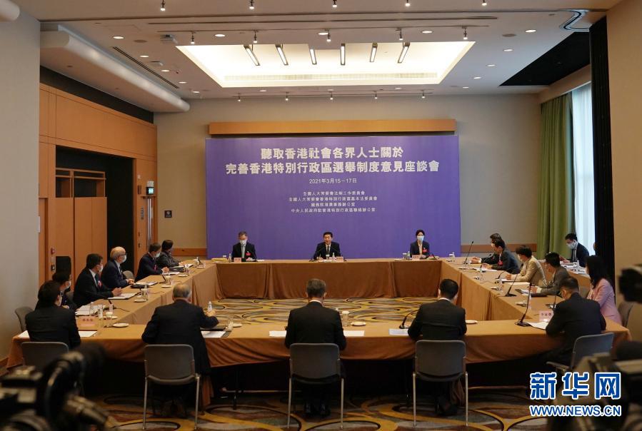 聽取香港各界完善選舉制度意見座談會現(xiàn)場(3月15日攝)。新華社記者 李鋼 攝