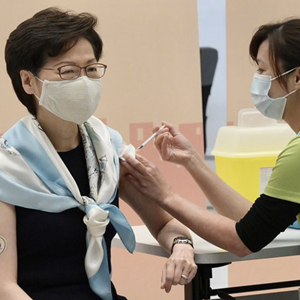 新華社香港3月22日電(記者韋驊)香港特區(qū)行政長(zhǎng)官林鄭月娥22日與多名主要官員在特區(qū)政府總部接種第二針新冠疫苗,并呼吁市民踴躍支持疫苗接種計(jì)劃。