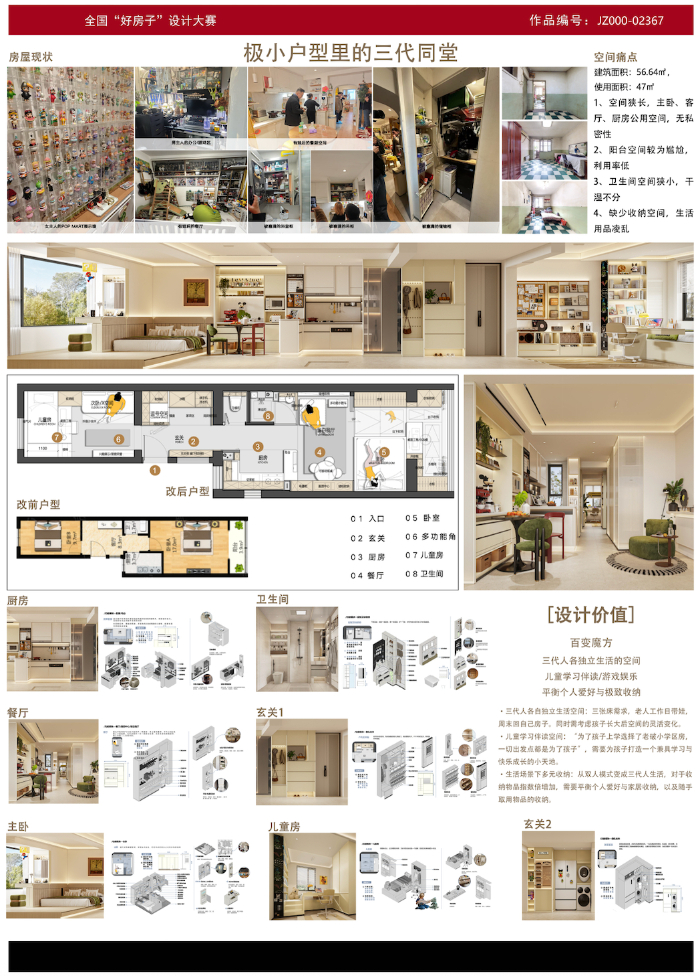 随着房地产市场的发展,老房焕新正在成为越来越多家庭的“刚需选择”。小户型功能不够、收纳不足,老人孩子同住时动线冲突、空间彼此打扰;改造链条长、沟通成本高,让许多家庭在决策上更加谨慎。如何把真实居住痛点转化为可落地、可交付的解决方案,成为行业共同面对的课题。对此,贝壳整装用一套57.64㎡极小户型改造方案在全国“好房子”设计大赛中给出了回答。