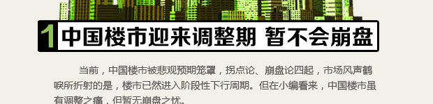 讓圖片和數(shù)字說話,告訴你一個通俗易懂的地產(chǎn)世界。用圖片專題的形式,將紛亂復雜的地產(chǎn)事件和相關(guān)數(shù)據(jù),通俗易懂的來展示,讓您可以一目了然,留下深刻印象。