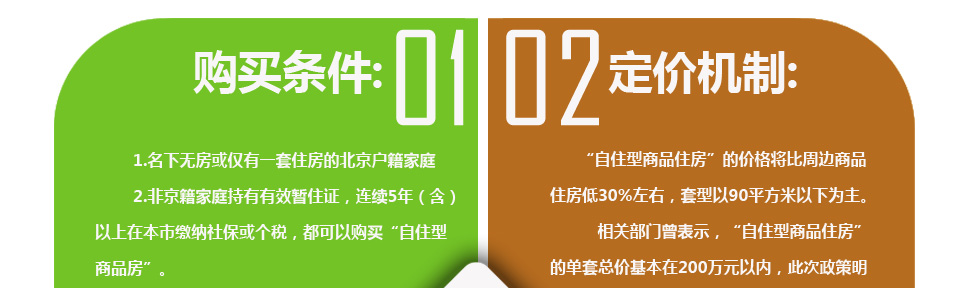非京籍家庭持有有效暫住證,連續(xù)5年(含)以上在本市繳納社?;騻€稅,可以購買一套住房。這意味著,名下無房或僅有一套住房的北京戶籍家庭以及符合購房條件且名下無房的非京籍家庭,都可以購買“自住型商品房”。