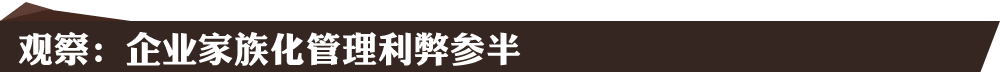 然而,在外界看來(lái),“家族化”管理和“去家族化”管理各有利弊。國(guó)泰君安分析師余立峰在接受新華網(wǎng)的采訪時(shí)表示,“家族化”管理在企業(yè)發(fā)展初期還是有一定的優(yōu)勢(shì),因?yàn)橐?guī)模比較小,區(qū)域化較強(qiáng),管理權(quán)制也相對(duì)集中,這樣有利于公司整體的規(guī)模和銷售的擴(kuò)大。隨著企業(yè)的發(fā)展到了一定程度以后,也就是到了全國(guó)化布局的時(shí)候,需要區(qū)域上的分制,使總部和區(qū)域管理出現(xiàn)分制。