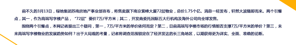 不過,一個市場現象是可喜的。據戴德梁行的數據統(tǒng)計,2014年,南京高端寫字樓物業(yè)的供應量將超過35萬平方米,主要集中于河西和南站區(qū)域,新街口和鼓樓核心區(qū)供應量不足7萬平方米。