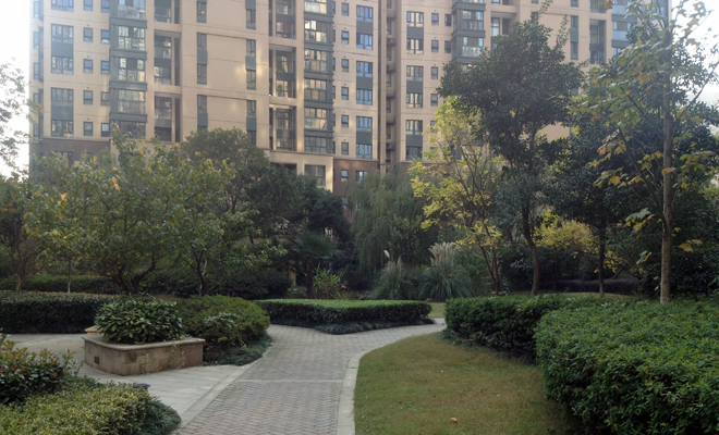 新華房產(chǎn)記者進(jìn)入小區(qū)的第一感覺就是環(huán)境非常好。樓棟之間、道路兩旁到處都是綠樹成蔭,各種類型的花草樹木修剪的井井有條,走在里面如同置身林間小道,居住環(huán)境十分怡人。