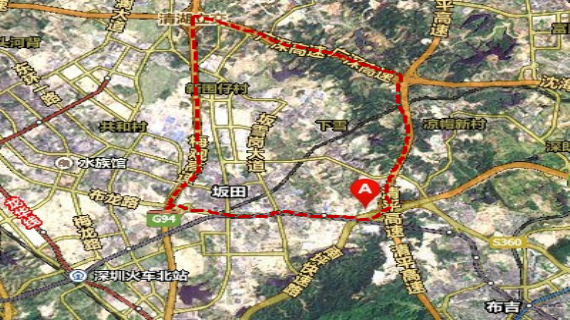 紅線區(qū)域?yàn)槿A為科技城 A點(diǎn)為項(xiàng)目所在