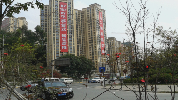 目前樓盤周邊不但缺乏購物場(chǎng)所,外出就餐也沒有大的餐館可供選擇。記者走訪發(fā)現(xiàn)周圍都是個(gè)人開的小餐館,難覓連鎖餐飲或上檔次些飯館。記者沿著項(xiàng)目旁邊的通往金色半山小區(qū)的小路上去,走了5分鐘到了金色半山小區(qū)門口才找到有華潤(rùn)萬家便利店和幾家不出名便利店和送水站。小區(qū)門口一個(gè)較大的鋪面外張貼了知名餐飲店——面點(diǎn)王的廣告紙,正值午餐時(shí)間但店鋪卻是大門緊鎖,記者從門口玻璃看進(jìn)去里面沒有營業(yè)的跡象,顯然該餐飲品牌最終并未入駐。