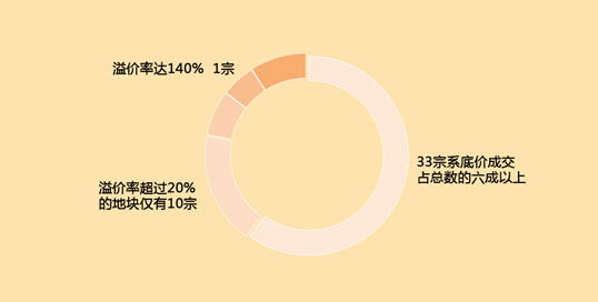 武漢上半年出讓的地塊中,有33宗系底價成交,占總數(shù)的六成以上;溢價率超過20%的地塊僅有10宗,最高的為沌口的一宗地塊,溢價率達140%。而進入4月以后,歷次土拍無一不是"火速底價成交"。[詳情點擊]