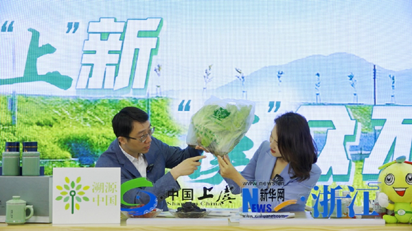 現(xiàn)場,紹興市上虞區(qū)副區(qū)長周尊隆用關(guān)鍵詞推介上虞:“最早建縣”“曹娥”“祝英臺”“產(chǎn)糧大縣”“四季仙果”“孝德文化之鄉(xiāng)”“綜合實力百強區(qū)”……一個鐘靈毓秀、朝氣蓬勃的上虞躍然話間。主持人品嘗上虞:本地大米、覺農(nóng)翠茗茶、高山櫻桃、桑葚、活體蔬菜……一個民安物阜、有滋有味的上虞展現(xiàn)舌尖。場外主播則探秘上虞:90后新農(nóng)人、科技大棚、無土栽培……一個創(chuàng)新智慧、數(shù)字興城的上虞閃爍田間。