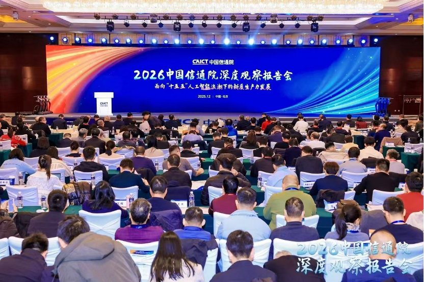 12月13日,2026中国信通院深度观察报告会主报告会在北京举办。本次报告会主题为“面向‘十五五’,人工智能浪潮下的新质生产力发展”。