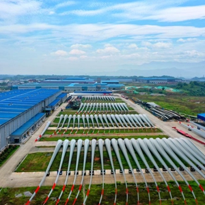 大型風電葉片生產(chǎn)企業(yè)中材科技(萍鄉(xiāng))風電葉片有限公司航拍景象。(王強攝 新華社通聯(lián)照片)