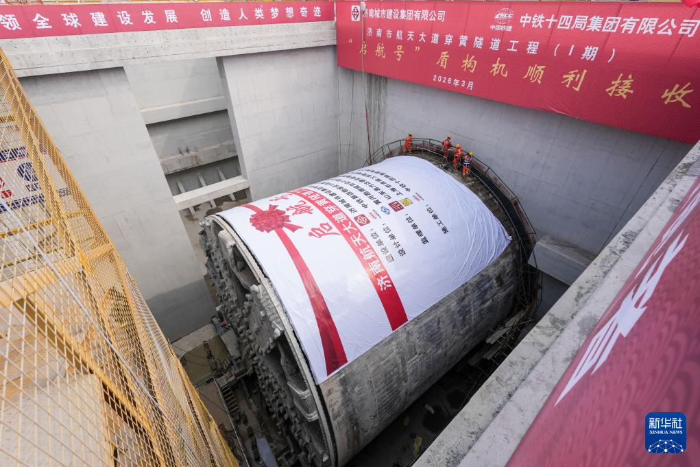 新华社济南3月20日电(记者张钟仁、樊曦)3月20日上午,在山东济南,随着开挖直径15.06米的“启航号”盾构机顶推到位,由中铁十四局承建的济南航天大道穿黄隧道南线盾构顺利贯通。
