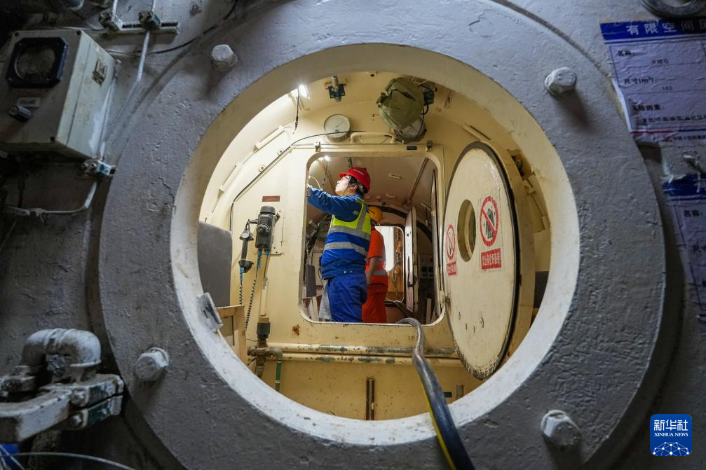 3月20日,中铁十四局工程人员在济南航天大道黄河隧道南线盾构段作业。新华社记者 朱峥 摄