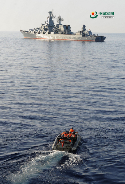 ????The third phase of the exercise, namely the operations to safeguard shipping safety, will be kicked off on May 18. During this phase, naval forces from the two countries will conduct maritime joint exercises under drifting condition, including maritime joint collective air defense, anti-ship, anti-submarine and anti-frogman at an open anchorage, as well as a series of exercises during sailing, such as air defense, anti-submarine, anti-ship and biological and chemical protection.