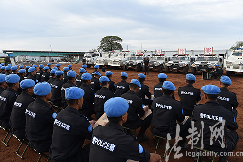 圖為中國(guó)第四支駐利比里亞維和警察防暴隊(duì)隊(duì)員在認(rèn)真聆聽(tīng)隊(duì)友演講