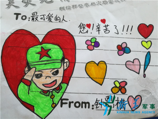 ????“官兵們很辛苦,早上6點就出門,直到深夜才回來休息。前天晚上,累了一天的官兵打著手電筒,幫助我們學校清理走廊的垃圾,扶正校園里被臺風吹倒的樹木,讓學校師生非常感動?!蔽寰壍诙嶒瀸W校德育處負責人黃森說,小朋友們想用自己的方式表達對官兵的感謝,就自己動手制作了感恩卡。