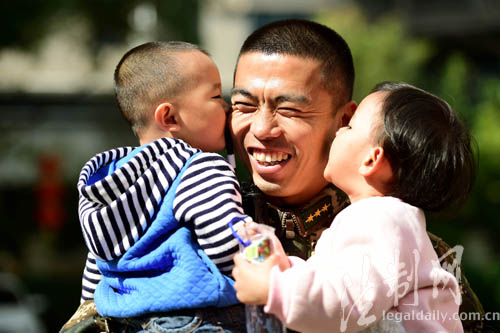 ????中隊(duì)長(zhǎng)曾云強(qiáng)回顧軍嫂在隊(duì)期間,幽默地說:兩個(gè)大人相當(dāng)于給部隊(duì)增加了兩名后勤尖兵,營區(qū)更干凈了,飯菜更美味了;兩個(gè)寶寶更像給官兵增加了兩顆“開心果”,14個(gè)小時(shí)高負(fù)荷勤務(wù)歸來,寶寶一聲“叔叔辛苦了!”,誰都忍不住上前抱一抱、逗一逗、鬧一鬧,其樂融融。