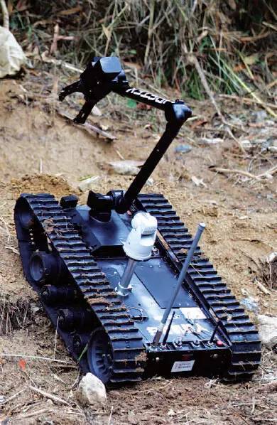 雷場(chǎng)清障車,是通過(guò)遙控操作的。具有在坡度小于40°的山地進(jìn)行清障排爆作業(yè)的功能。該車具有較強(qiáng)的爬坡能力,操作手可以在1000米范圍內(nèi)實(shí)施無(wú)線遙控控制,完成掃除淺層防步兵地雷、清除灌木叢和鏟運(yùn)樹木等任務(wù),以電錘擊爆地雷手雷等未爆炸物品,這期間即使產(chǎn)生爆破碎片或者沖擊波都不會(huì)對(duì)操作員構(gòu)成危險(xiǎn)。