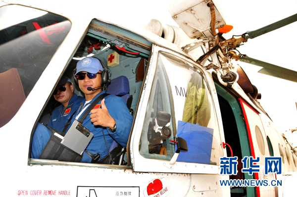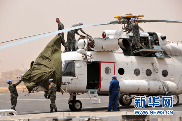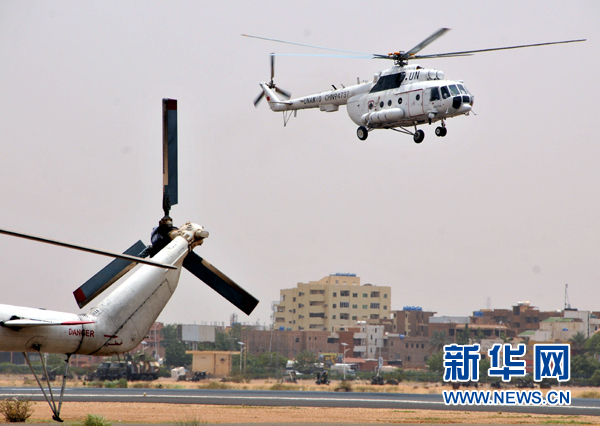 ?。吩拢常比?,中國首批維和直升機(jī)分隊(duì)在蘇丹喀土穆國際機(jī)場成功首飛。