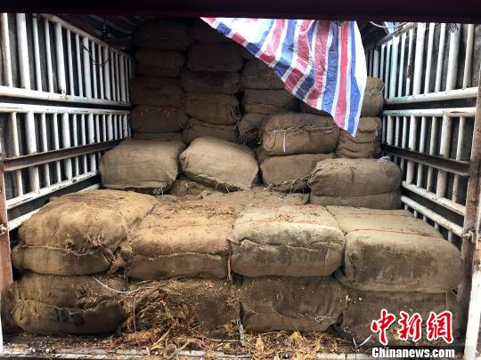 圖為貨車上拉的走私煙葉。杜金凱 攝