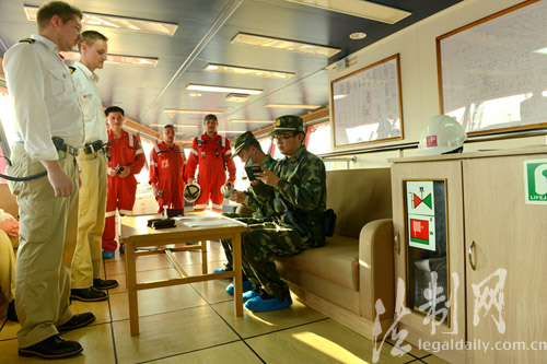 圖為黃島邊檢站官兵在進行人證對照檢查