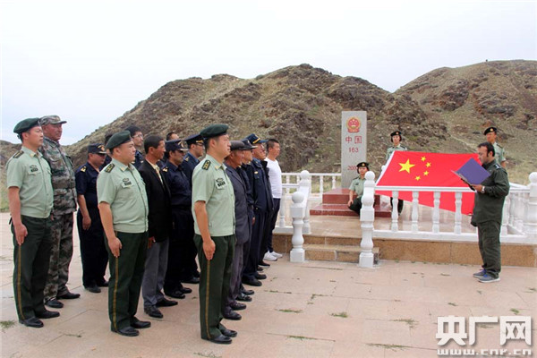 ????近日,烏拉斯臺(tái)邊檢站與口岸聯(lián)檢單位、“民族團(tuán)結(jié)一家親”親戚代表、自治區(qū)駐疆內(nèi)口岸工作組在中蒙163界碑共同舉行“軍旗映國(guó)門忠誠(chéng)鑄軍魂”發(fā)聲亮劍活動(dòng),全面貫徹落實(shí)新疆維護(hù)社會(huì)平穩(wěn)和長(zhǎng)治久安總目標(biāo),打牢維護(hù)民族團(tuán)結(jié)思想基礎(chǔ),進(jìn)一步增強(qiáng)廣大官兵的愛(ài)國(guó)主義情懷,展示執(zhí)勤官兵敢于發(fā)聲、勇于亮劍的堅(jiān)定黨性及堅(jiān)強(qiáng)擔(dān)當(dāng),表明堅(jiān)決聽(tīng)黨指揮、堅(jiān)決維護(hù)社會(huì)大局安定的理想信念。官兵們一致表示,將始終以更加飽滿的工作熱情投入到邊檢查緝工作中,認(rèn)真履職,敢于擔(dān)當(dāng),筑牢邊境防控的銅墻鐵壁。