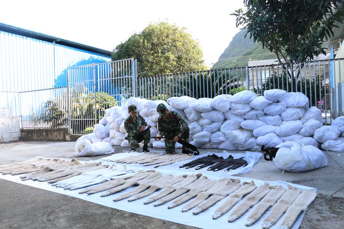 ????該支隊獲得情報后成立專案組,在轄區(qū)展開排查。其間,發(fā)現(xiàn)龍邦鎮(zhèn)一車輛裝載可疑涉私貨物,待其裝載完畢后,隨即追蹤該車。行駛中,該車從小路繞過邊防執(zhí)勤點和檢查站。歷經(jīng)兩個多小時追蹤后,專案組截停該車,當(dāng)場查獲無合法手續(xù)貂皮80多件5200多張。