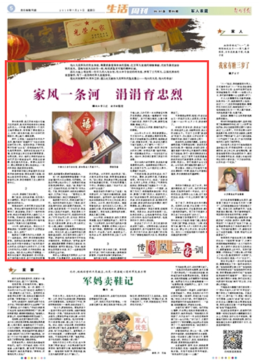 老了老了,我沒(méi)有成為當(dāng)代穆桂英。但我的兒孫輩,不論在哪一個(gè)行業(yè)干,不論地處南北,不論富貴貧窮,都有一股浩然英雄氣。沒(méi)了孫子和重孫,但我又多了許許多多的“兵孫兒”。