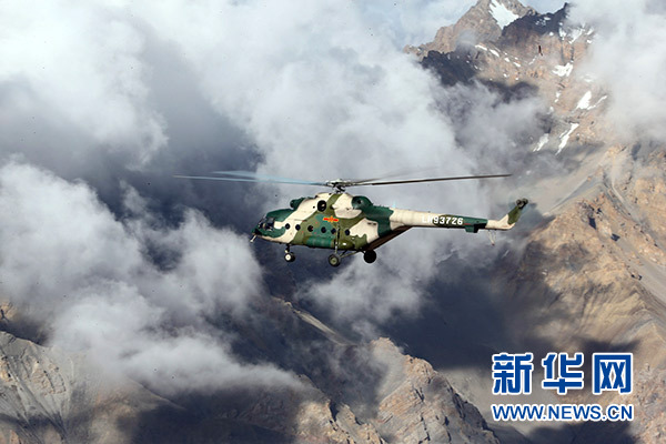 2016年7月20日,新疆軍區(qū)某陸航旅運輸直升機(jī)一營飛行員在高海拔邊防線執(zhí)行巡邏任務(wù)。新華社發(fā)(吳世科 攝)