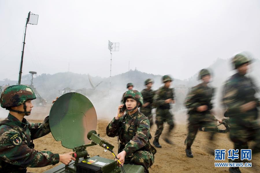 俞細(xì)文(左二)在野外訓(xùn)練場(chǎng)迅速架設(shè)通信臺(tái)站(12月11日攝)。新華社發(fā)(劉明松 攝)