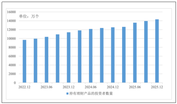 《报告》显示,2025年,理财投资者数量保持增长态势。截至2025年末,持有理财产品的投资者数量达1.43亿个,较年初增长14.37%。