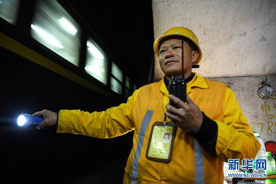 在廣西河池境內(nèi)黔桂鐵路線上的鄧山隧道,中國鐵路南寧局集團(tuán)有限公司柳州工務(wù)段的4名看守工輪換值班,依靠手電筒在黑暗中穿行,及時(shí)巡查隧道中可能出現(xiàn)的各種隱患,確保每天經(jīng)隧道運(yùn)行的59趟客貨列車春運(yùn)安全。鄧山隧道全長773米,是一個(gè)需要人員全天候看守的鐵路隧道。