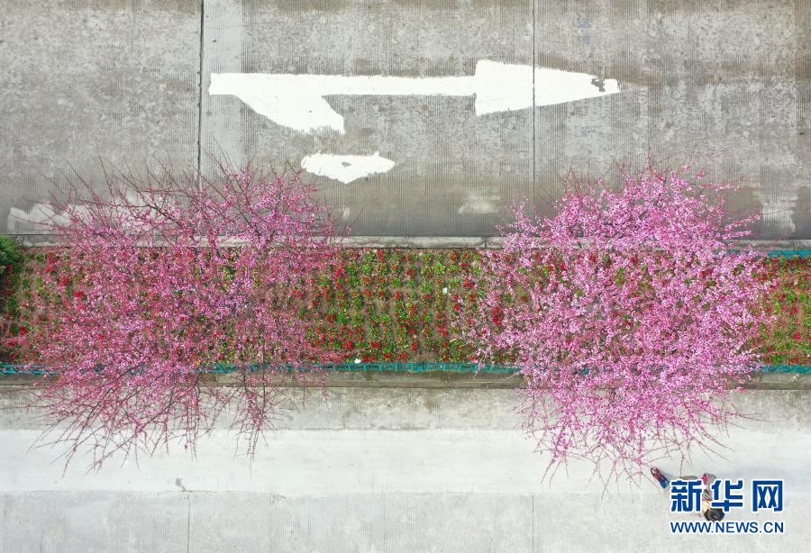 浙江景寧畬族自治縣街頭梅花盛開(2月14日攝,無人機(jī)照片)。新華社發(fā)(李肅人 攝)