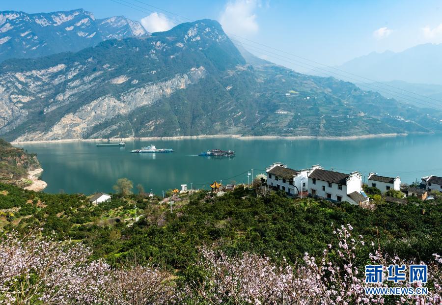 春到三峽,桃花盛開,江水碧綠,船舶往來如梭,構(gòu)成一幅幅美麗的圖畫。