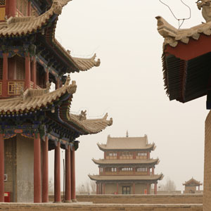 當日,甘肅河西走廊部分地區(qū)出現(xiàn)浮塵天氣,嘉峪關關城被浮塵籠罩。